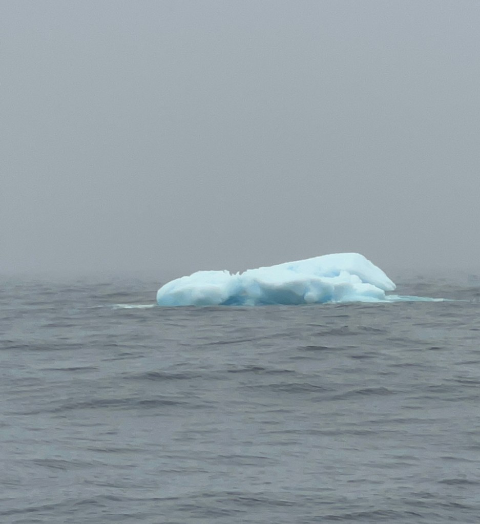 We saw our first “land” around 7 pm! By land, it was really a large iceburg. The whole crew was impressed by the large floating block of ice – it felt like a promise of what was to come! Eventually we saw land!! The captain lowered the speed and we began navigating between much larger ice chunks.